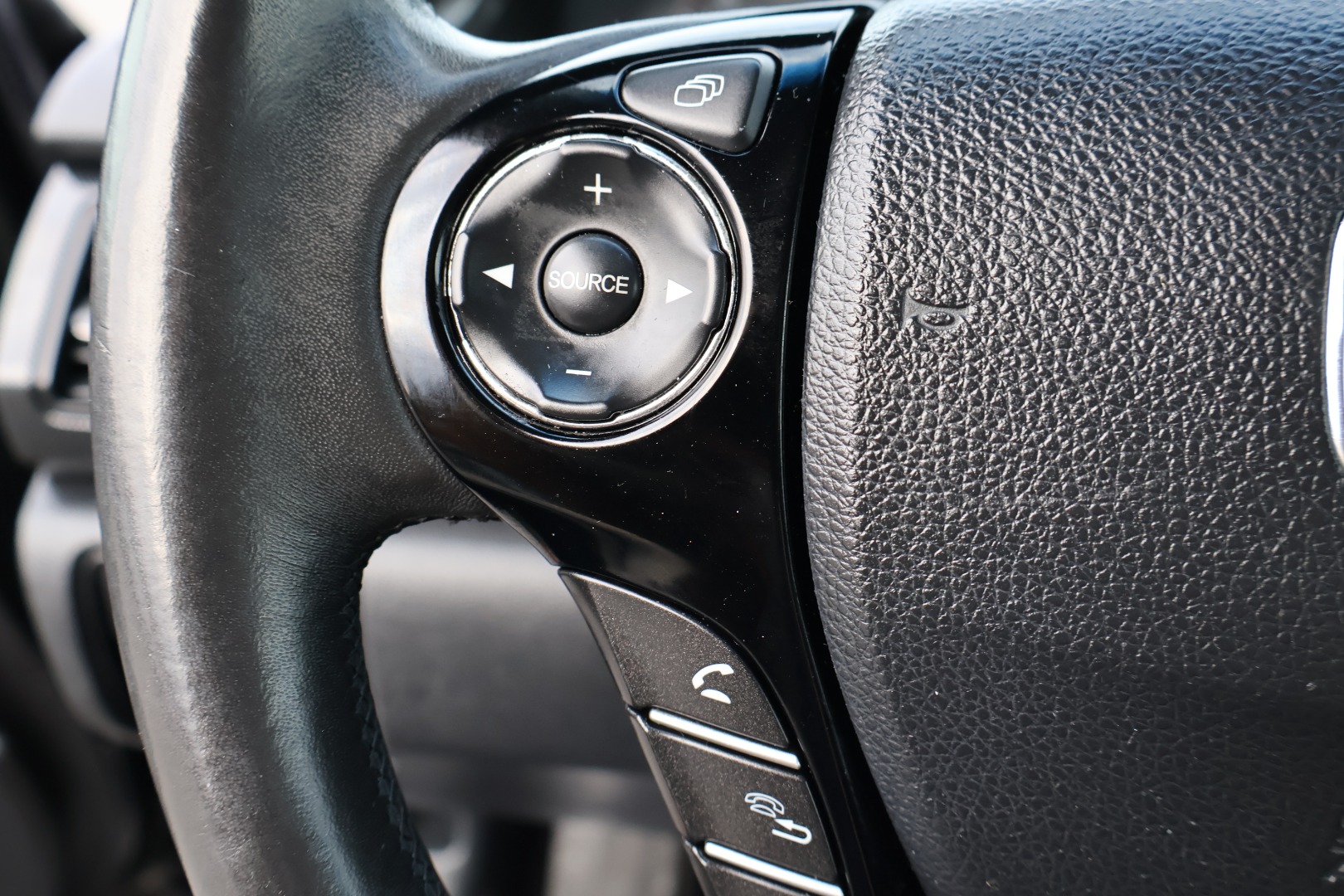 - Leather-wrapped steering wheel