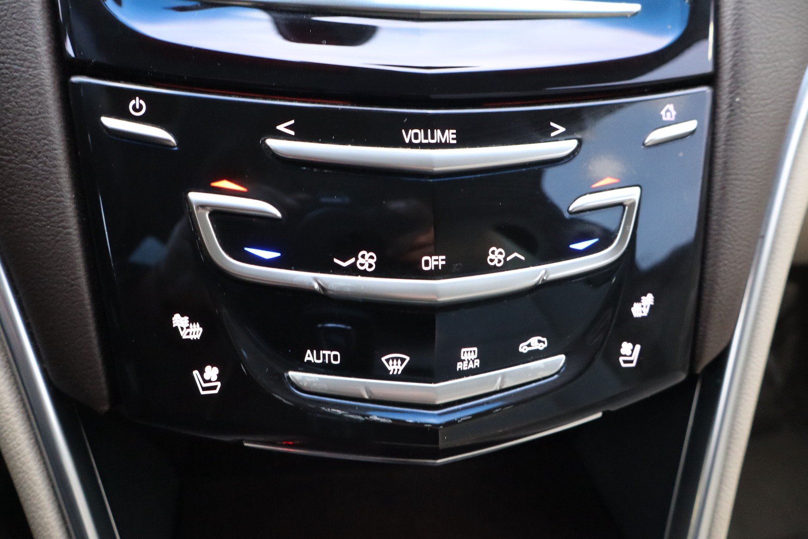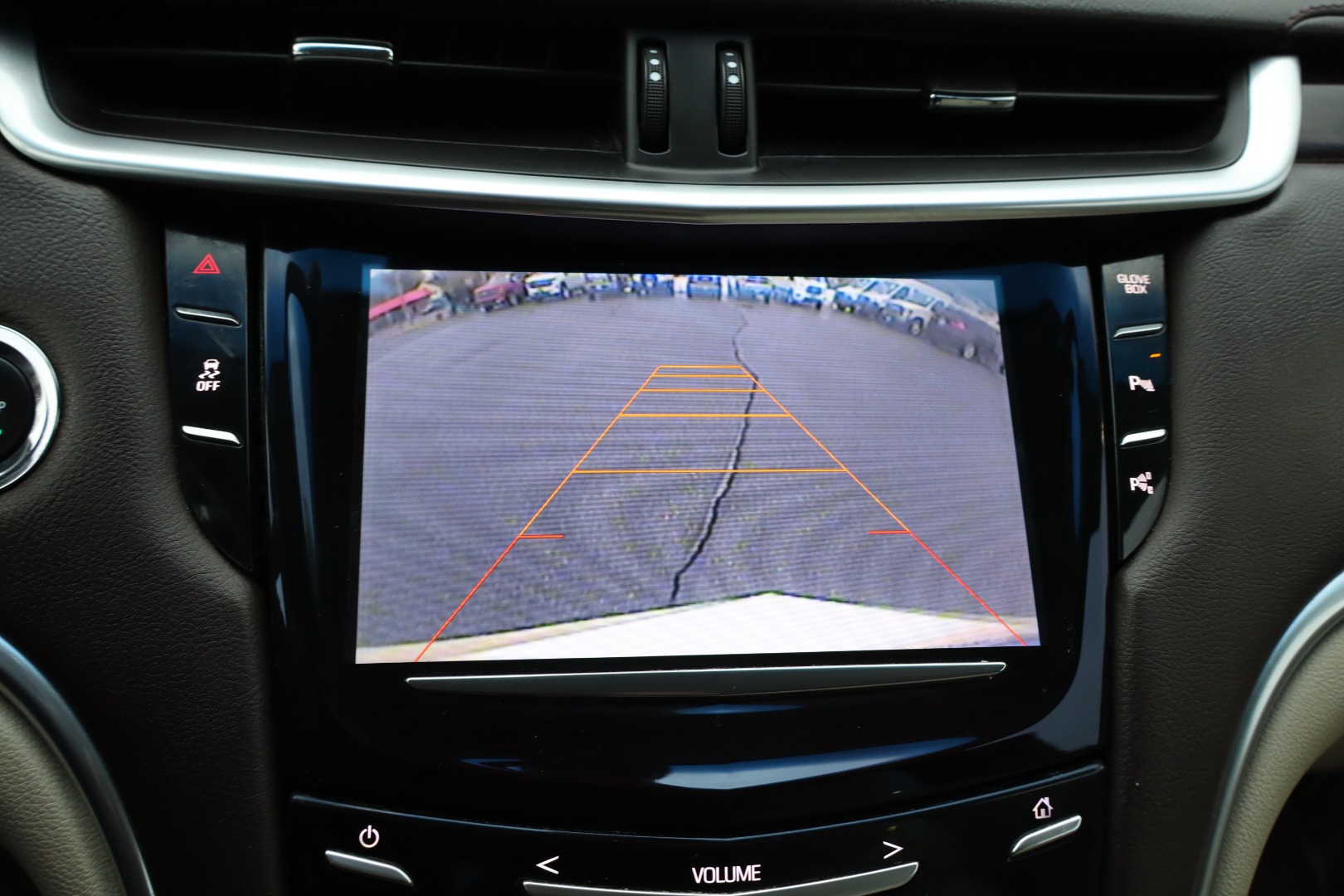 - CUE Information and Media Control System 8" display, featuring touch response, haptic feedback, gesture recognition, proximity sensing, articulating storage door/bin, clock display and compass feature