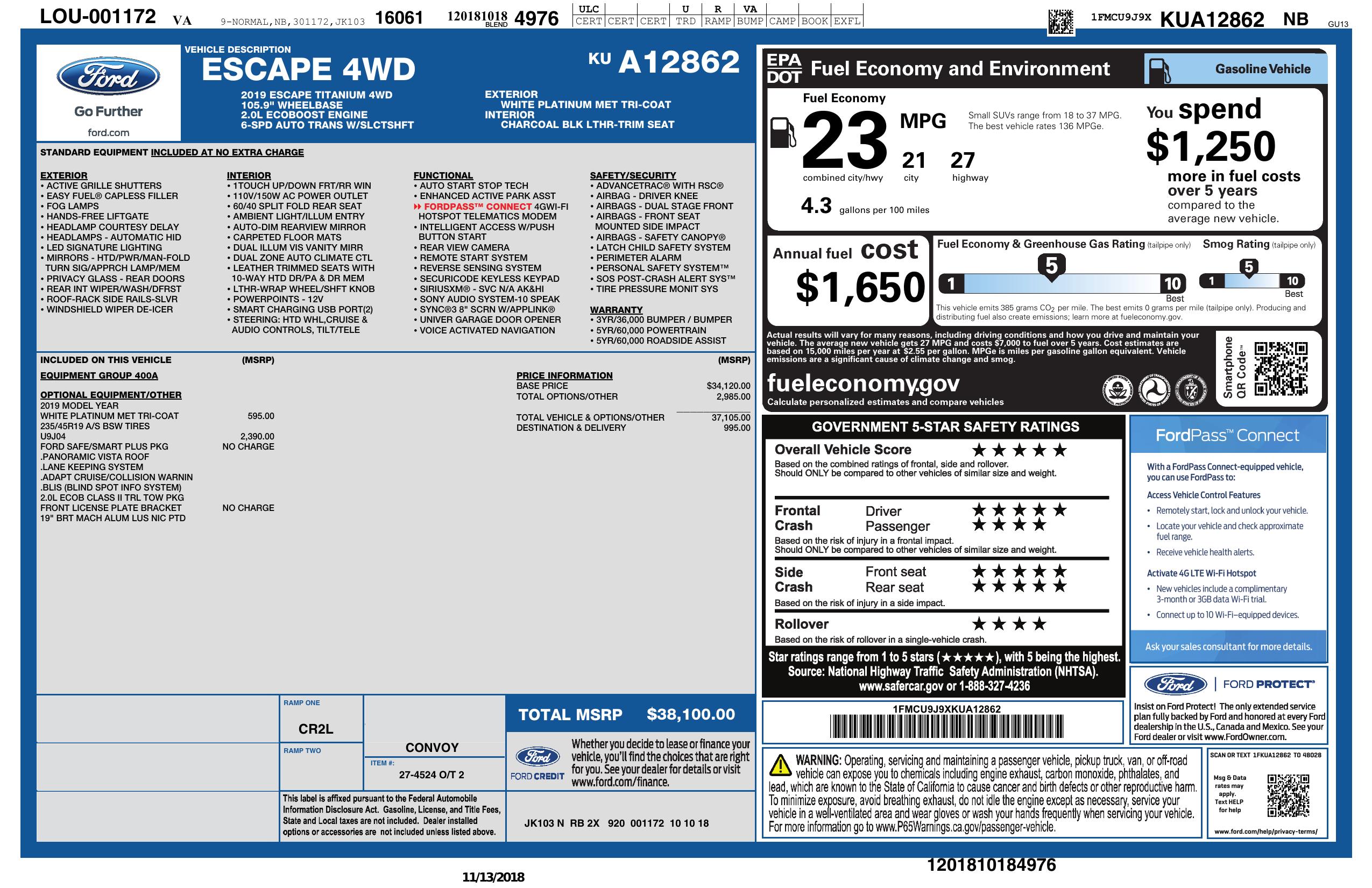 - VIN: 1FMCU9J9XKUA12862