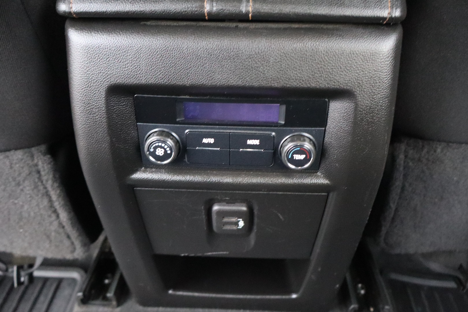 - Console, front center with 2 cup holders, covered storage bin with storage and removable tray